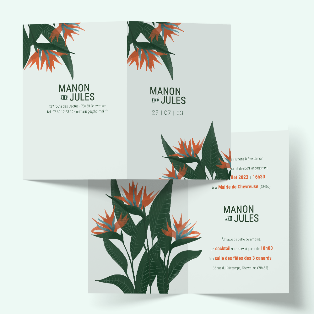 Exotisme, voyage et naturalité... Invitez vos proches avec le faire-part de mariage « Paradis » de la Collection « Jardin des Plantes ». Ils seront séduits par son élégance et son graphisme épuré.