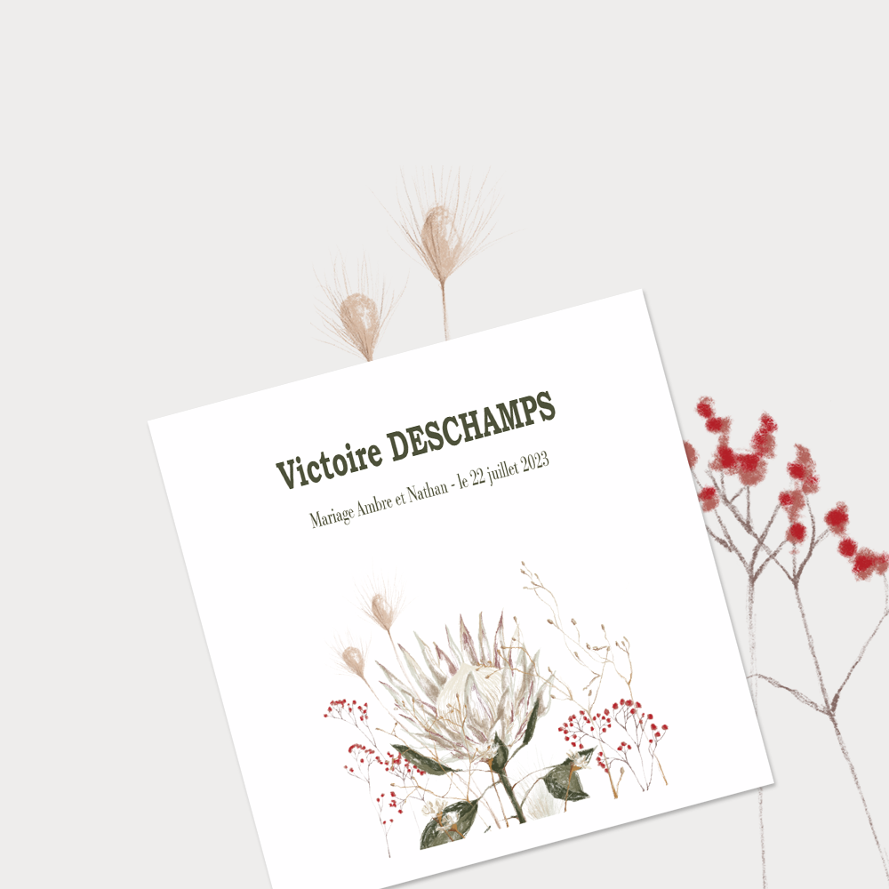 Légèreté, naturalité et délicatesse... Invitez vos proches avec le faire-part de mariage « Protea » de la Collection « Jardin des Plantes ». Ils seront séduits par sa douceur, élégance et son illustration délicate.