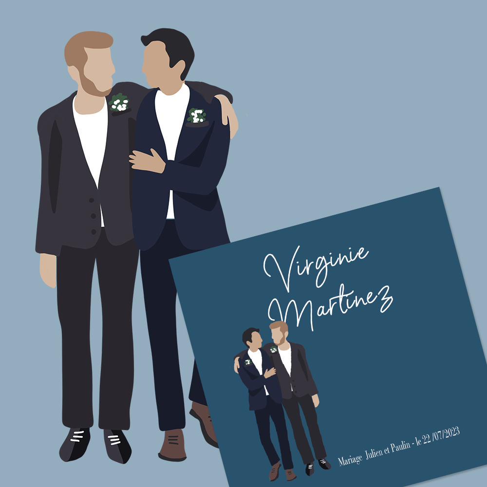 Marque-place assorti au faire-part. Un seul ou plusieurs modèles différents pour distinguer les hommes des femmes.